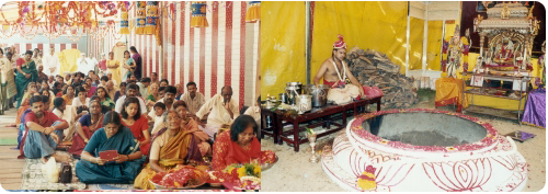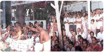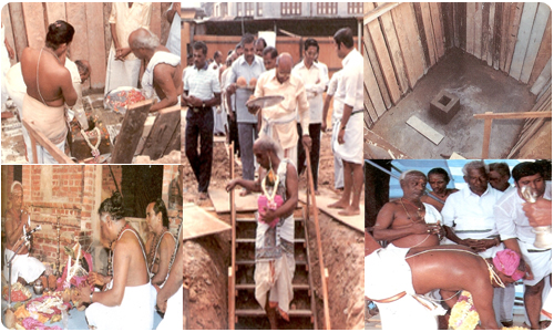These photographs show the ceremonial placing of gold and precious stone and closing of Bramha-randrams of Vimanams and Rajagopuram on 24-03-1985